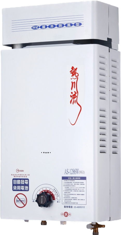 12公升屋外加強抗風型自然排氣熱水器免用電池AS-1286W $9,700加入訂單