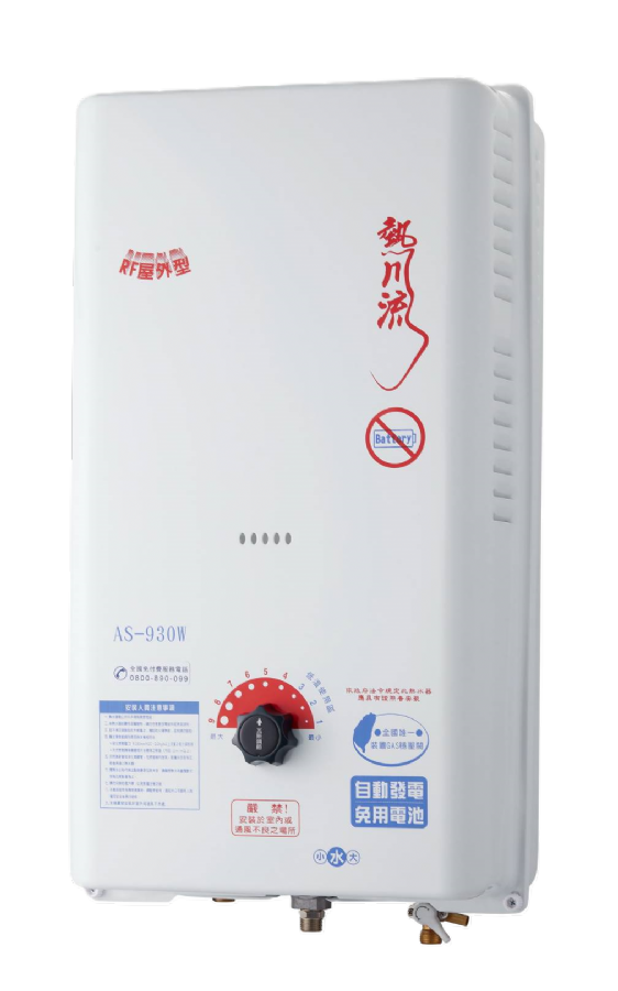12公升屋外抗風型自然排氣熱水器免用電池AS-950W $9,400加入訂單